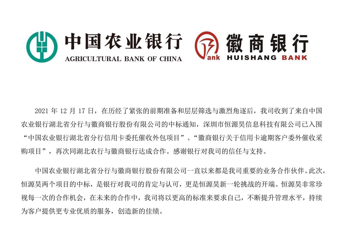喜報!恒源昊中標江西建行零售類逾期及不良貸款委外催收項目